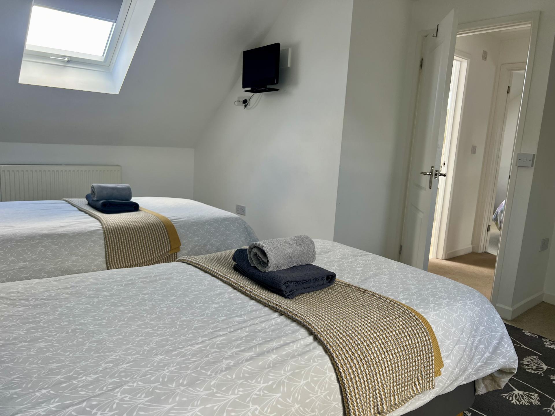 We provide weekly housekeeping, with fresh bedding and towels included. Both bedrooms are located on the first floor – the master bedroom features a king-size bed, while the second bedroom offers twin beds.